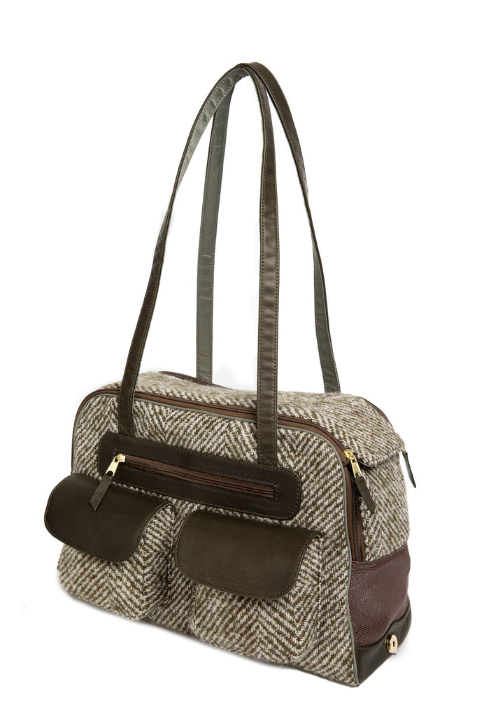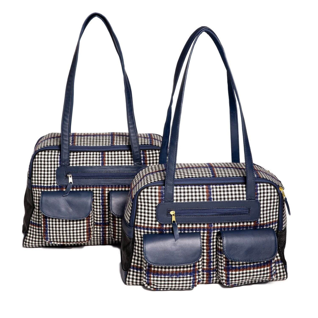 Canine Styles Wool Plaid Dog Carrier with Blue Leather Trim - Airline Approved