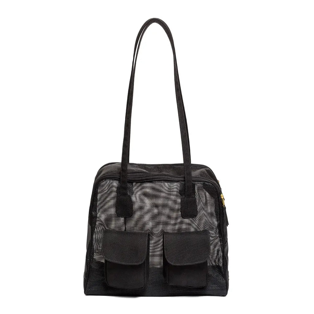 Canine Styles Dog Carrier All Mesh See-Through - Black w/ Canvas Trim