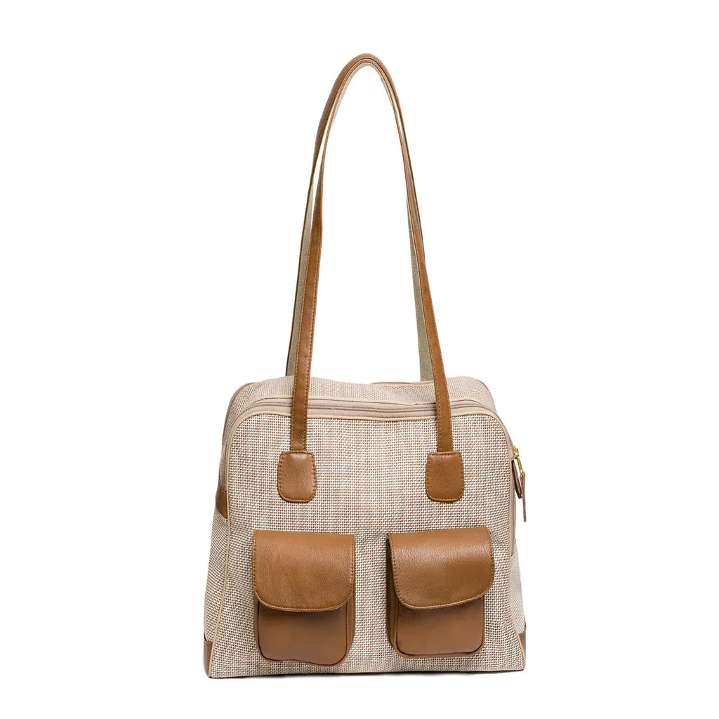 Canine Styles Cargo Dog Carrier Leather Trim Beige Nylon