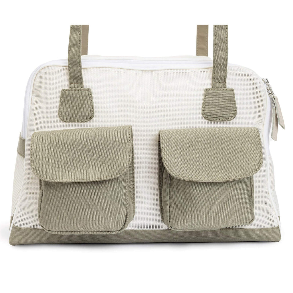 Canine Styles Dog Carrier All Mesh See-Through - Beige/Green Leather Trim