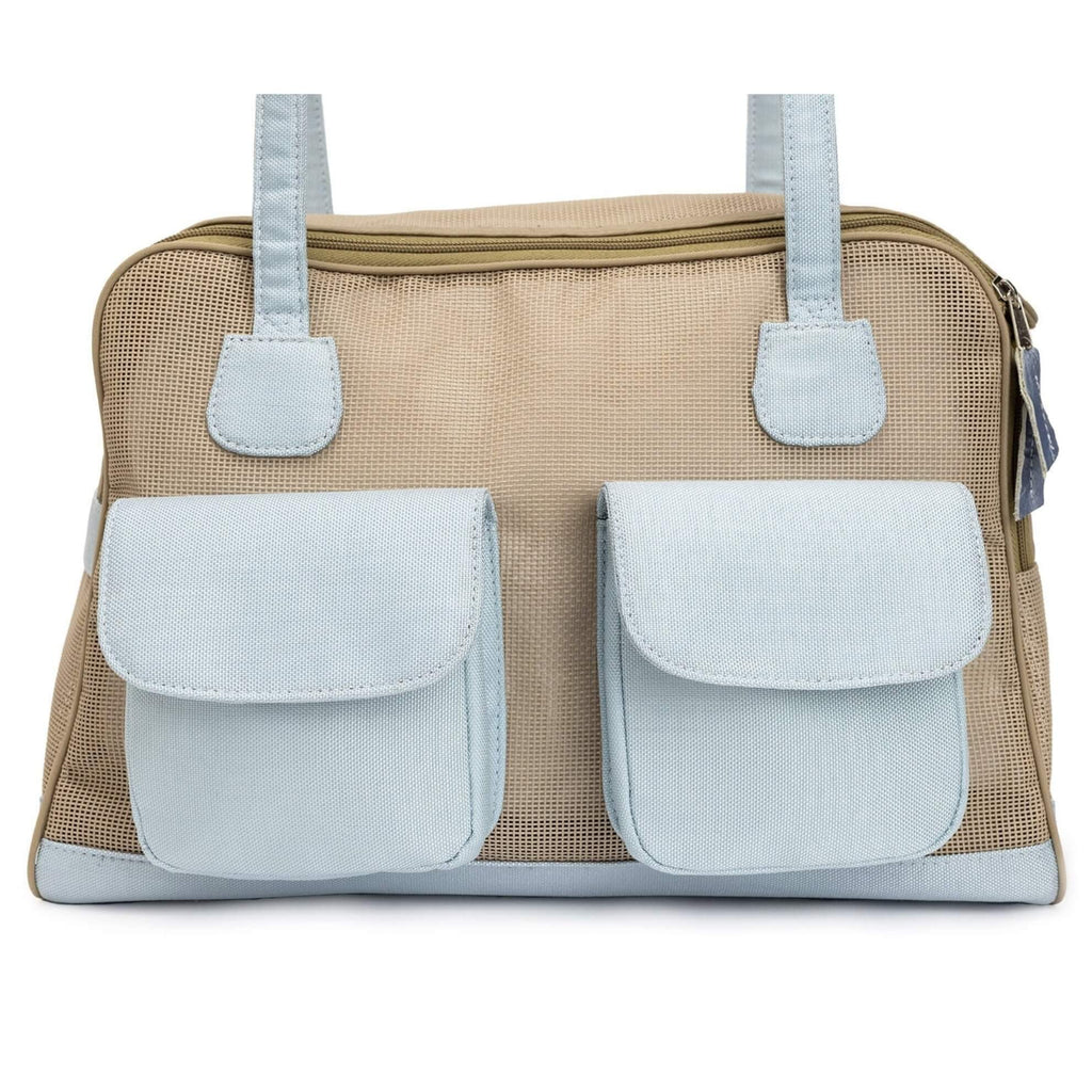 Canine Styles Dog Carrier All Mesh See-Through - Beige w/ Blue Canvas Trim