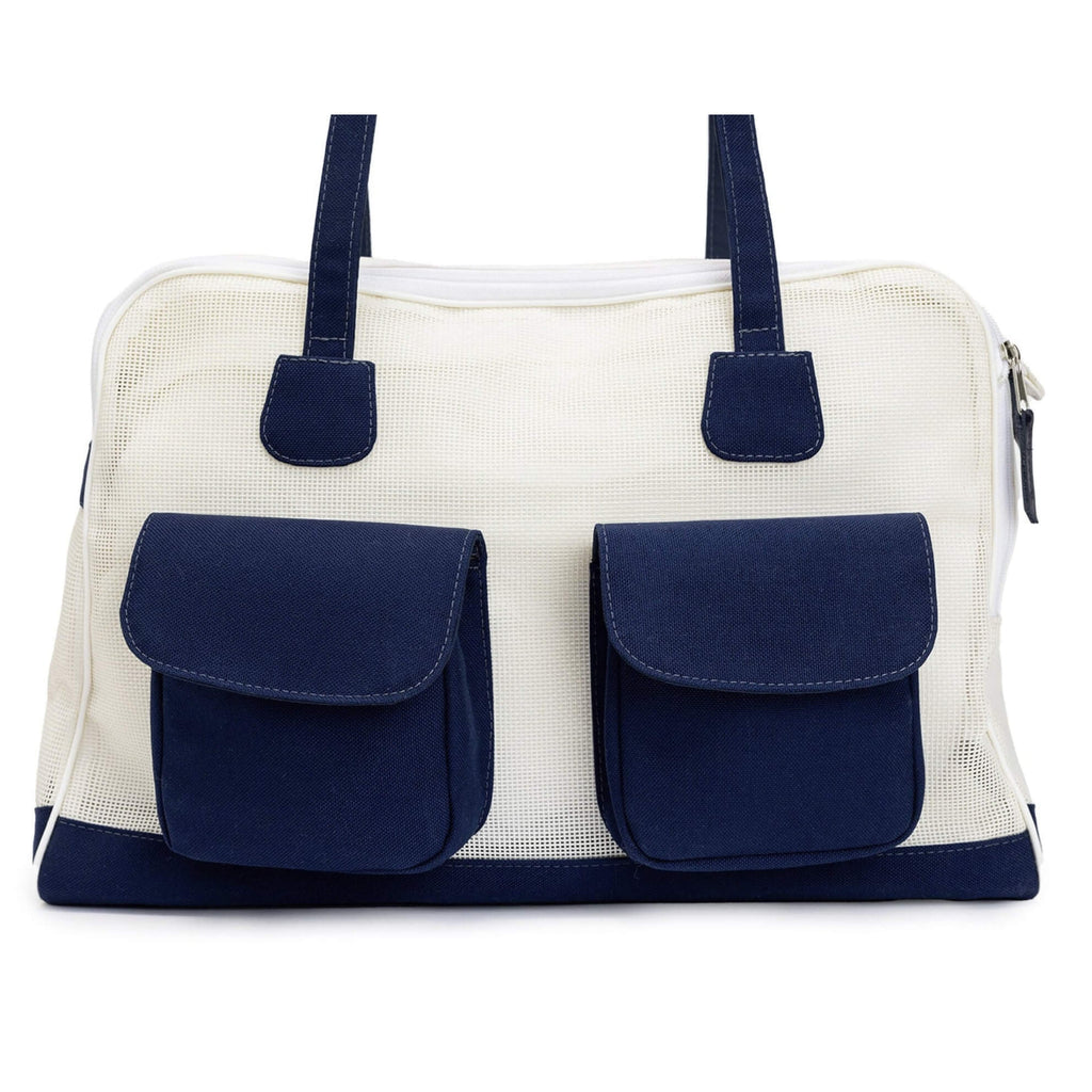 Vendor:Canine StylesCanine Styles Dog Carrier All Mesh White w/Navy or Beige
