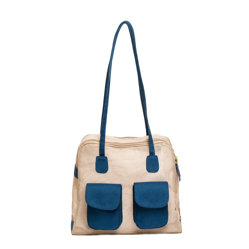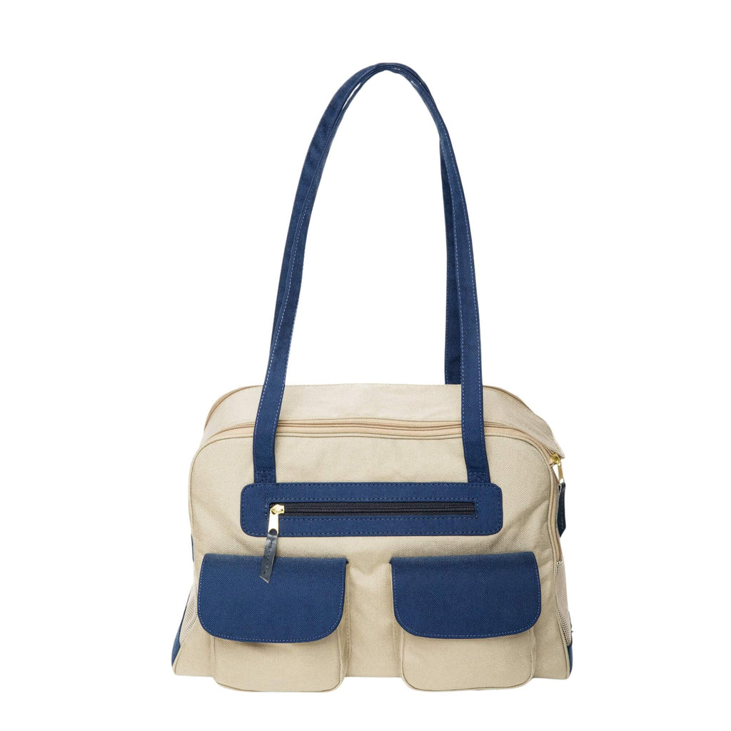 Vendor:Canine StylesCanine Styles Dog Carrier All Mesh See-Through - Beige w/ Blue Canvas Trim