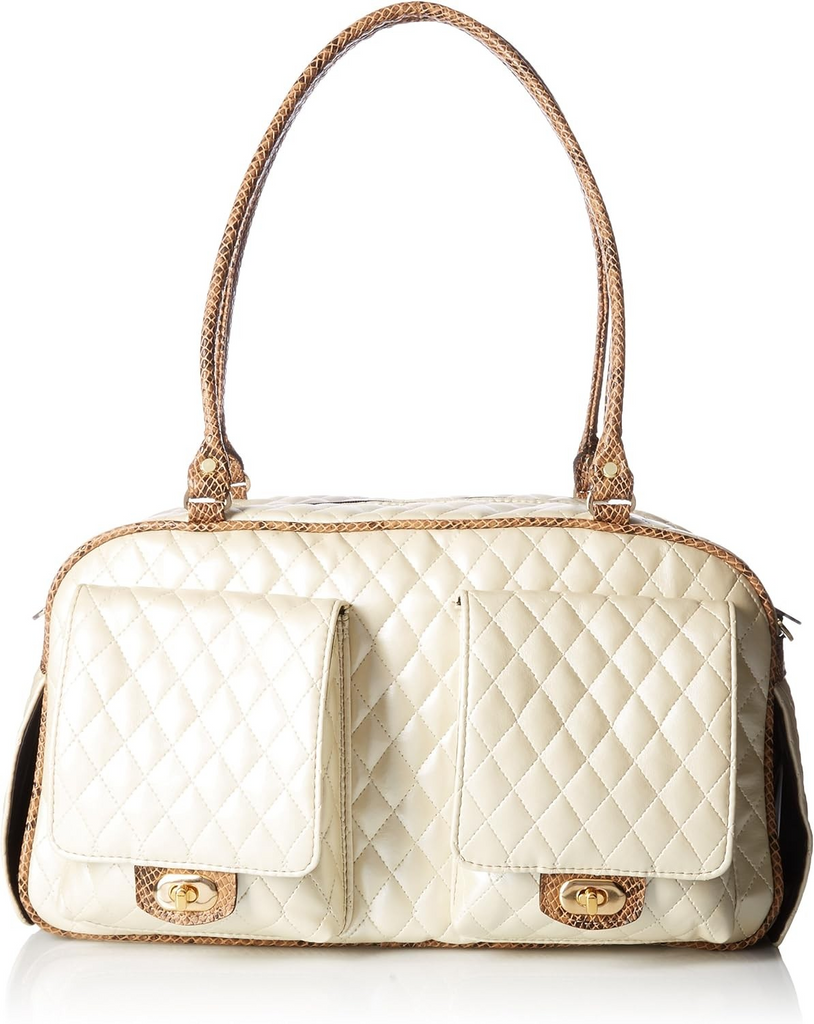 SaleVendor:PetoteMarlee Dog Carrier Ivory Quilted with Snake Trim
