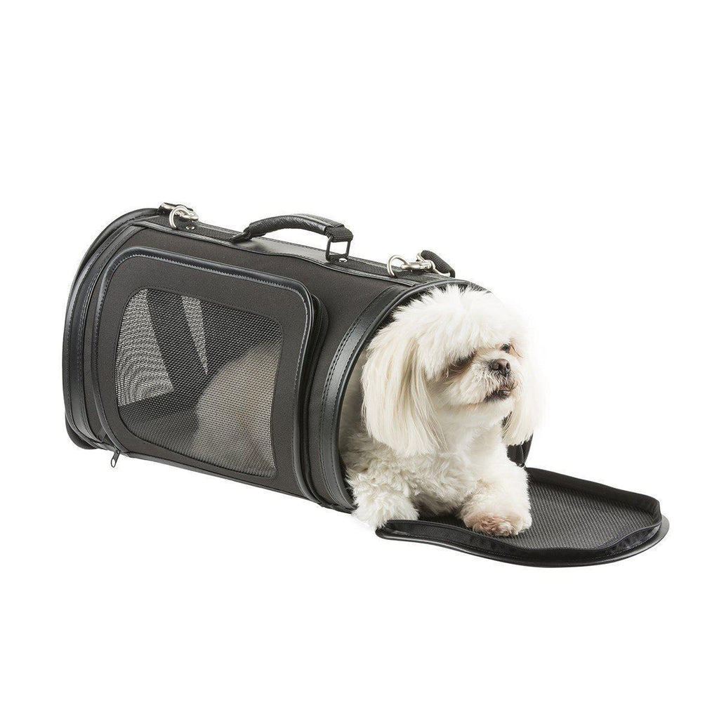 Canine Styles Cargo Dog Carrier Black Nylon with Leather Trim