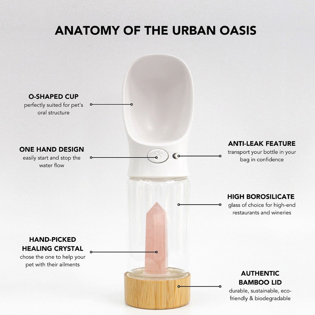 Urban Oasis Crystal Infused Pet Water Bottle - Clear Quartz