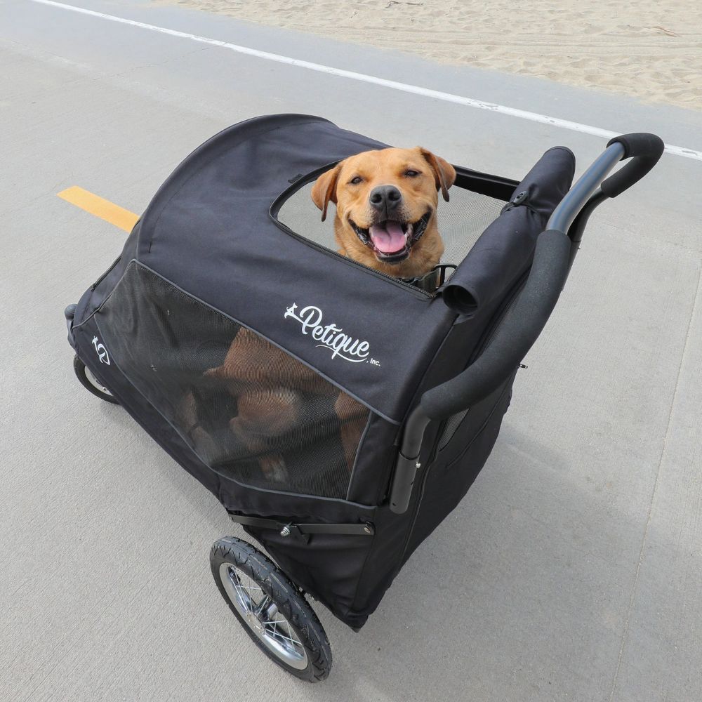 SaleVendor:PetiquePetique Apollo Elite Pet Stroller for Large Dogs: Sturdy Ramp, Low to Ground, Air-Filled Bike Tires, Peek-a-Boo Window Folds Compact, Convertible Canopy, For Large & Multiple Dogs, Supports up to 133 LBS