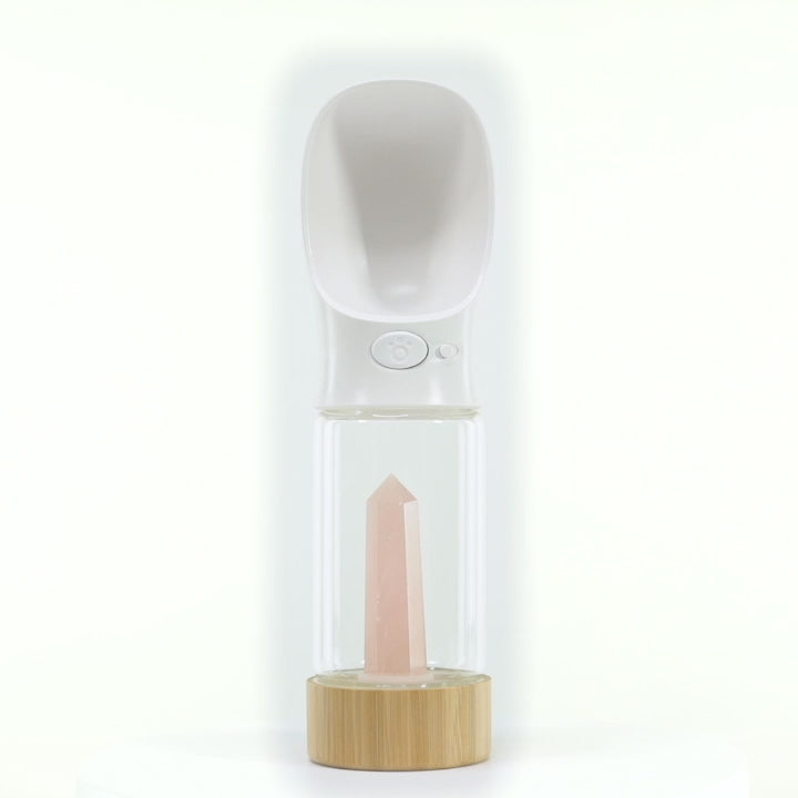 See Rose Quartz crystal pet water bottle here.